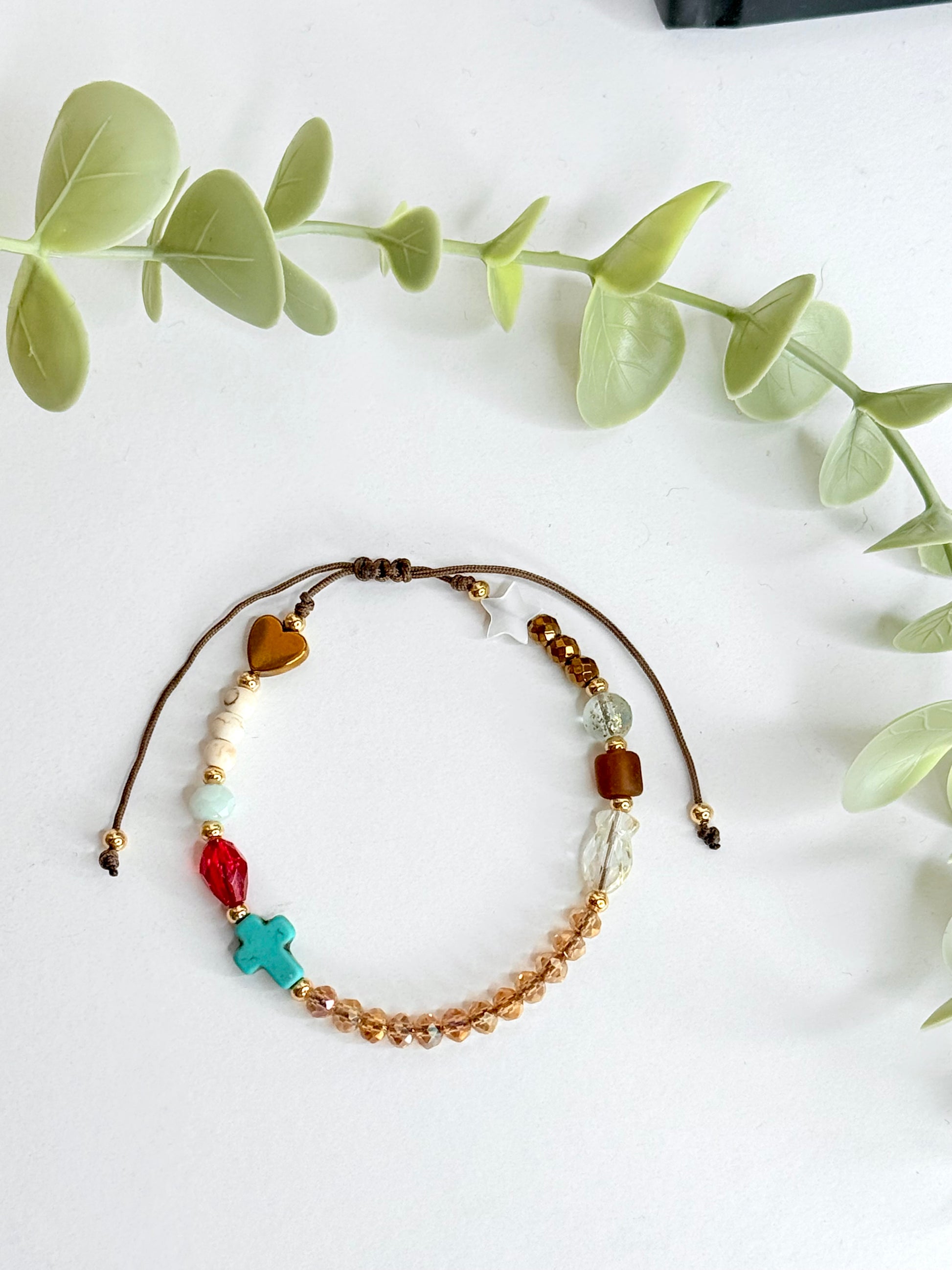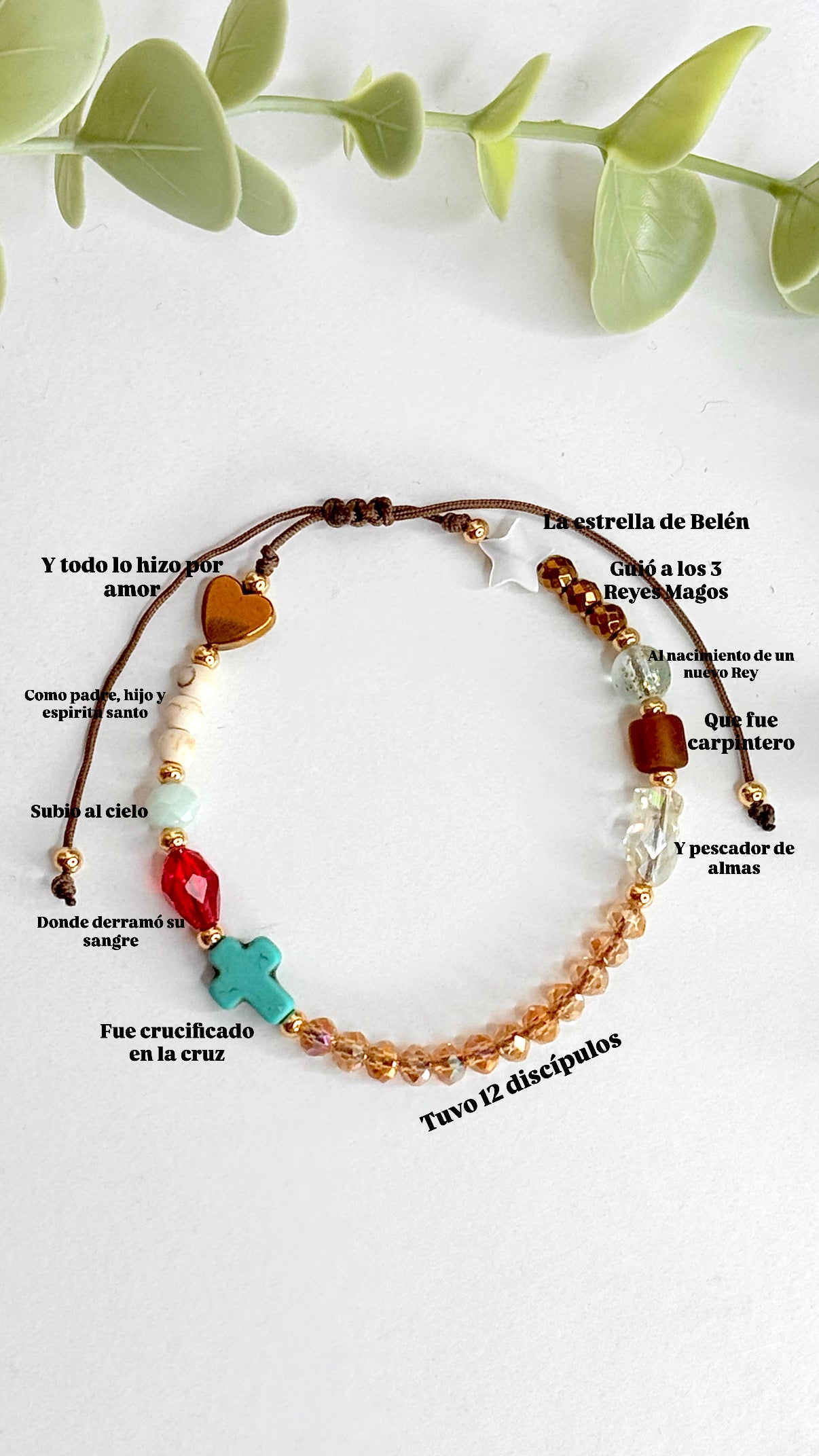 Una pieza que trasciende el diseño: esta pulsera representa la vida, muerte y resurrección de Jesús a través de elementos cuidadosamente seleccionados.