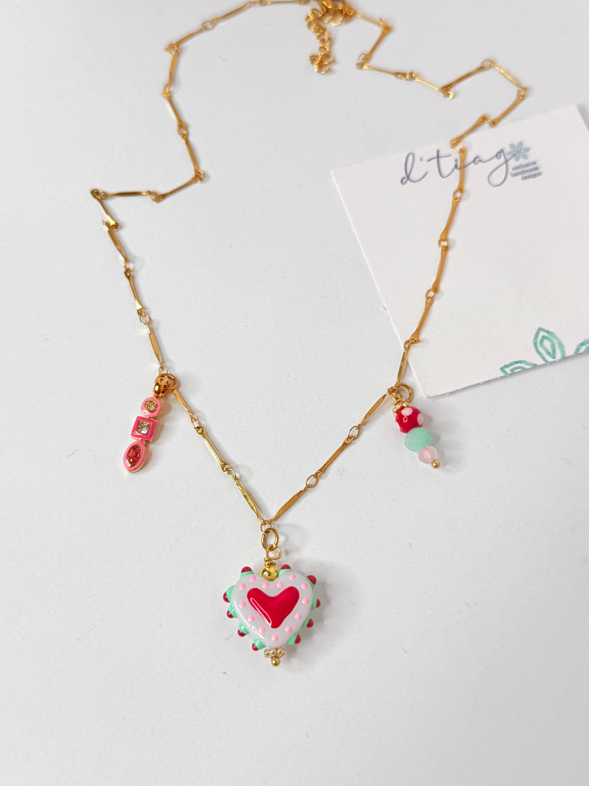 Hermoso collar de charms en Acero Inoxidable con piedras y charm en stainless steel. Mide 17” con extension adicional de 2”