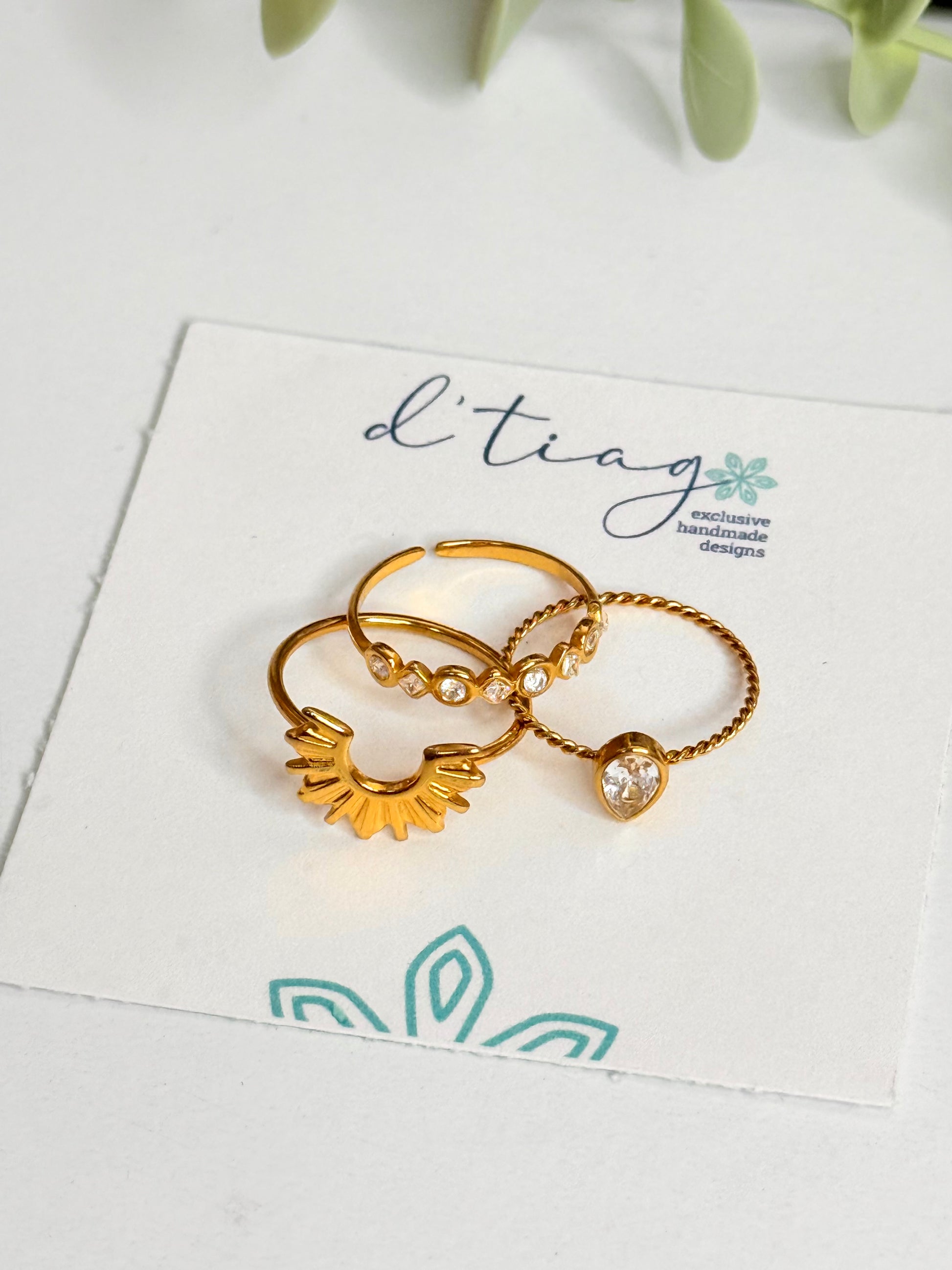 Hermoso Set De 3 sortijas, tamaño 7. Son en acero inoxidable. 2 de ellas ajustan, pero una es tamaño 7