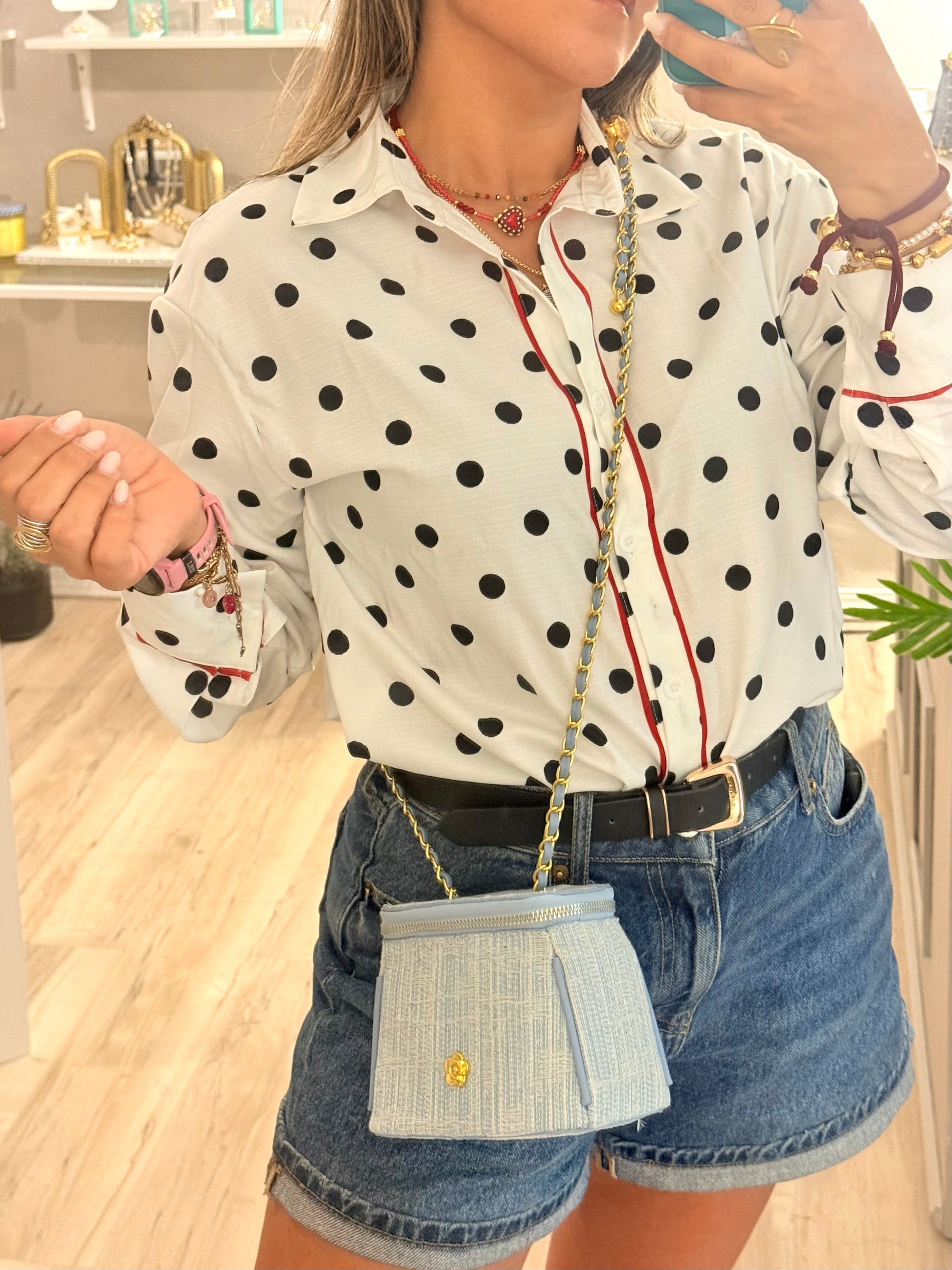 Cartera pequeña estilo crossbody en material denim (mahon) con cadena ajustable